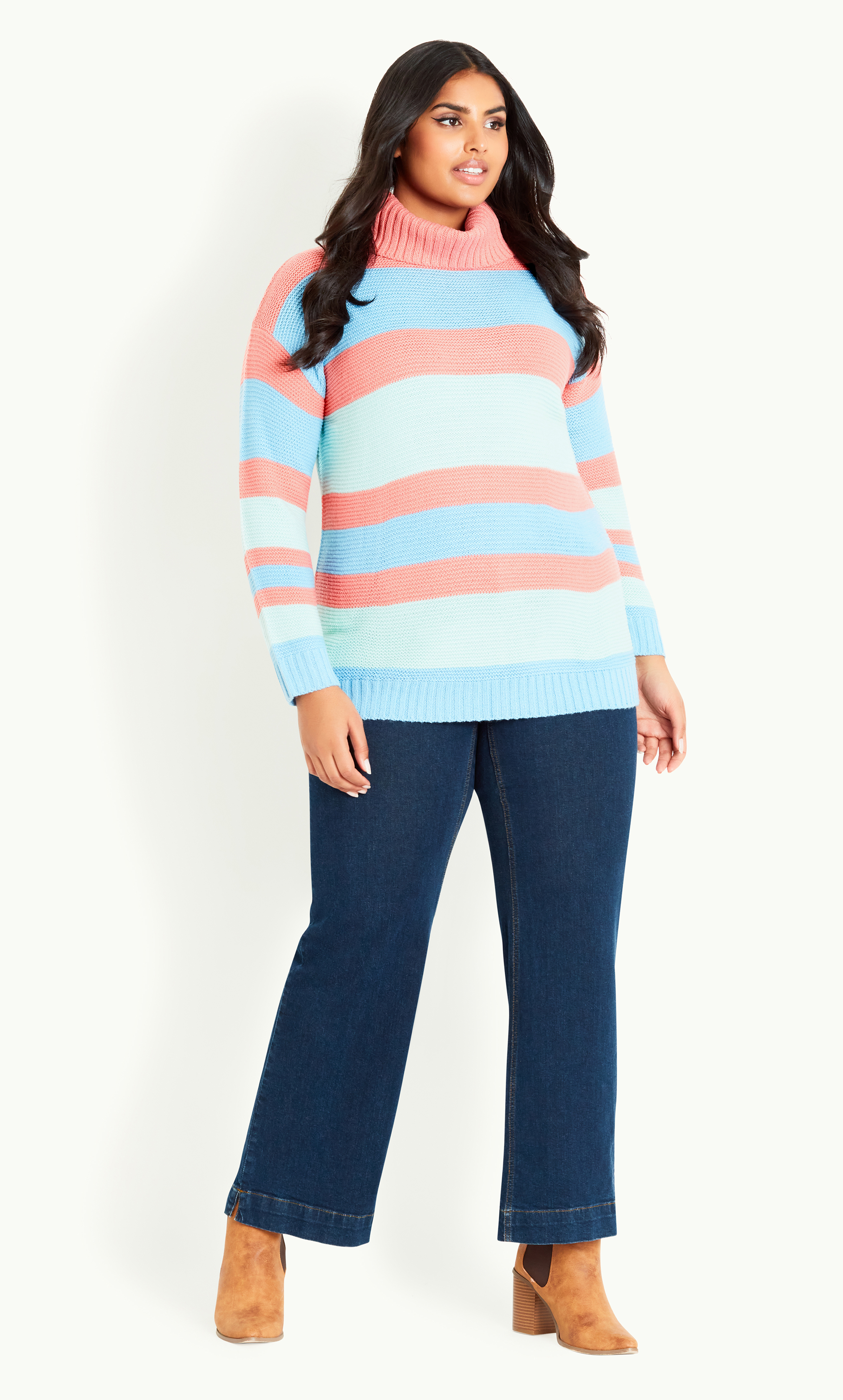 Shop Now: Stripe Roll Neck Sweater by Evans. Available now on Avenue. RRP $79.99