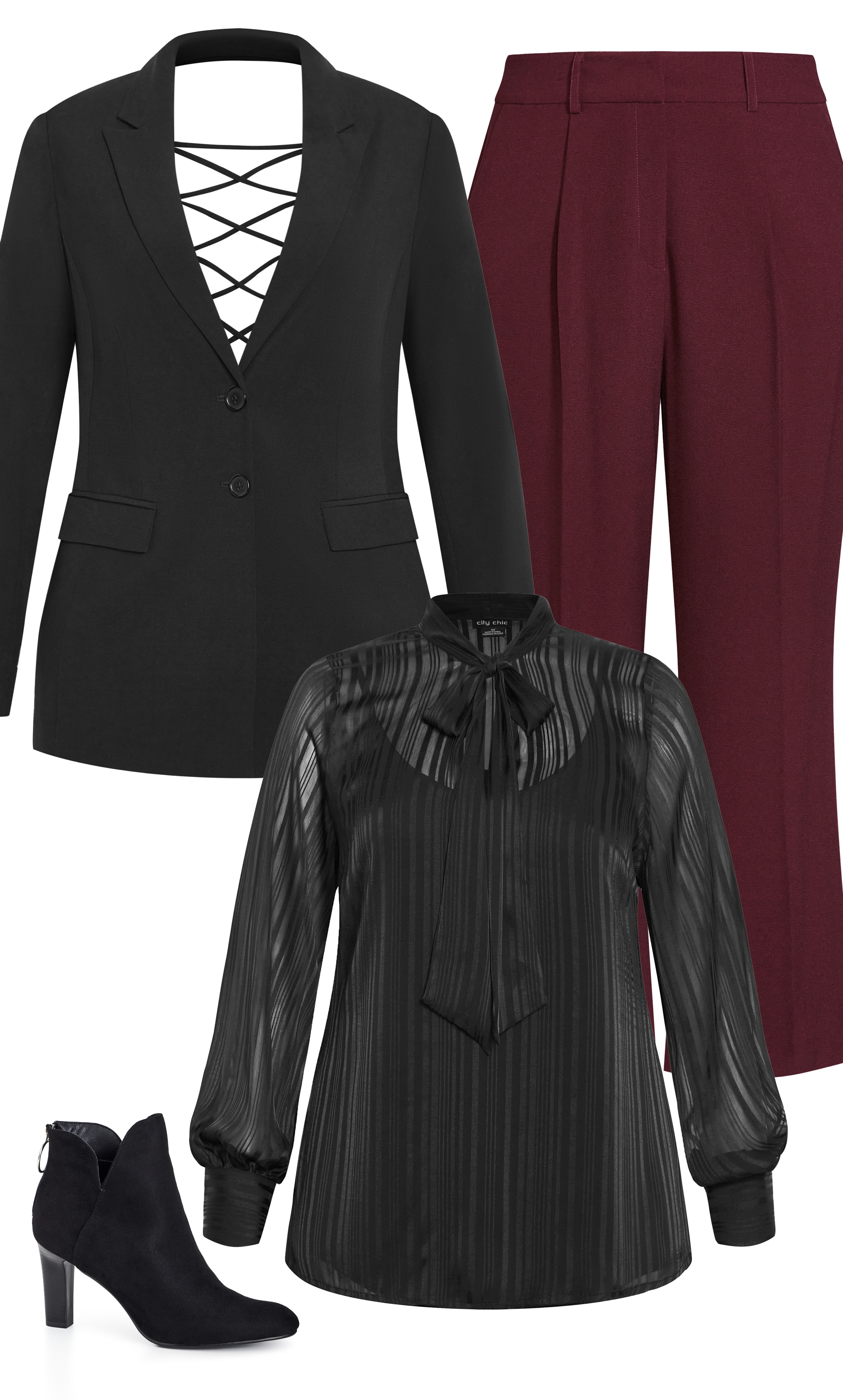 Elevate your office look with the Angelica Shirt, a versatile piece that’s as chic as it is workwear-appropriate. It pairs perfectly with the Jazmin Jacket for added elegance, complete with our Magnetic Pant in oxblood for a pop of color.