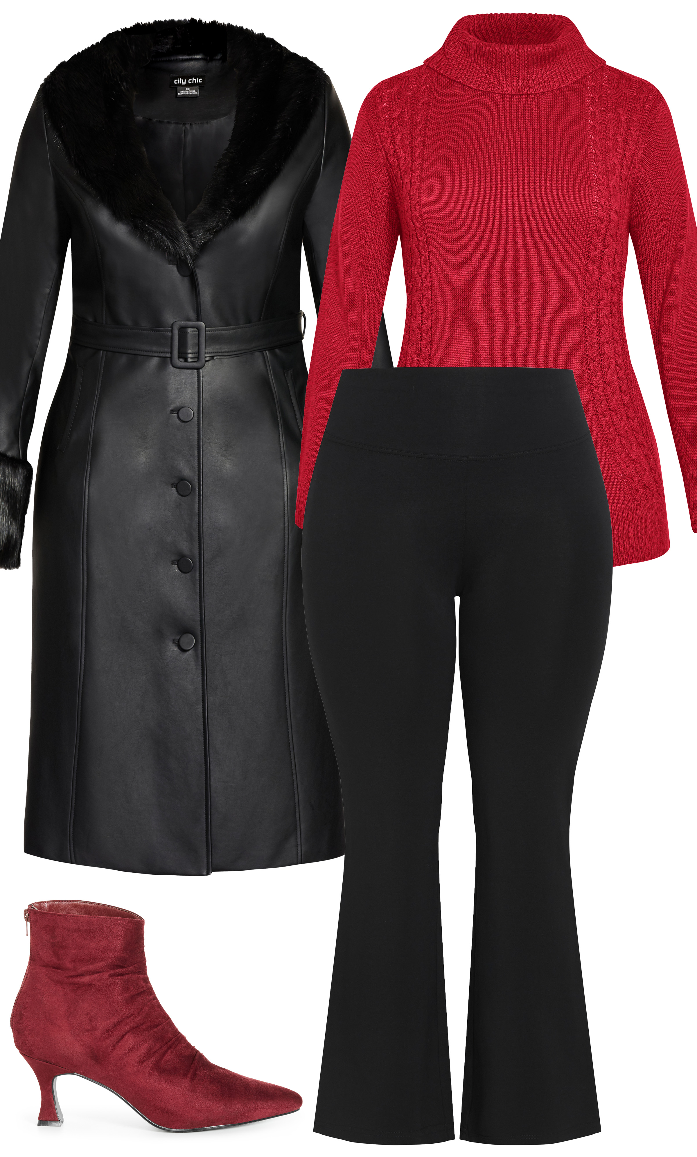 Take your daywear to the next level with this elegant red and black look. The Effortless Chic Coat is a beautifully tailored piece cut to a longline length, featuring a button front and streamlined silhouette. It’s the perfect layer for everyday styling!