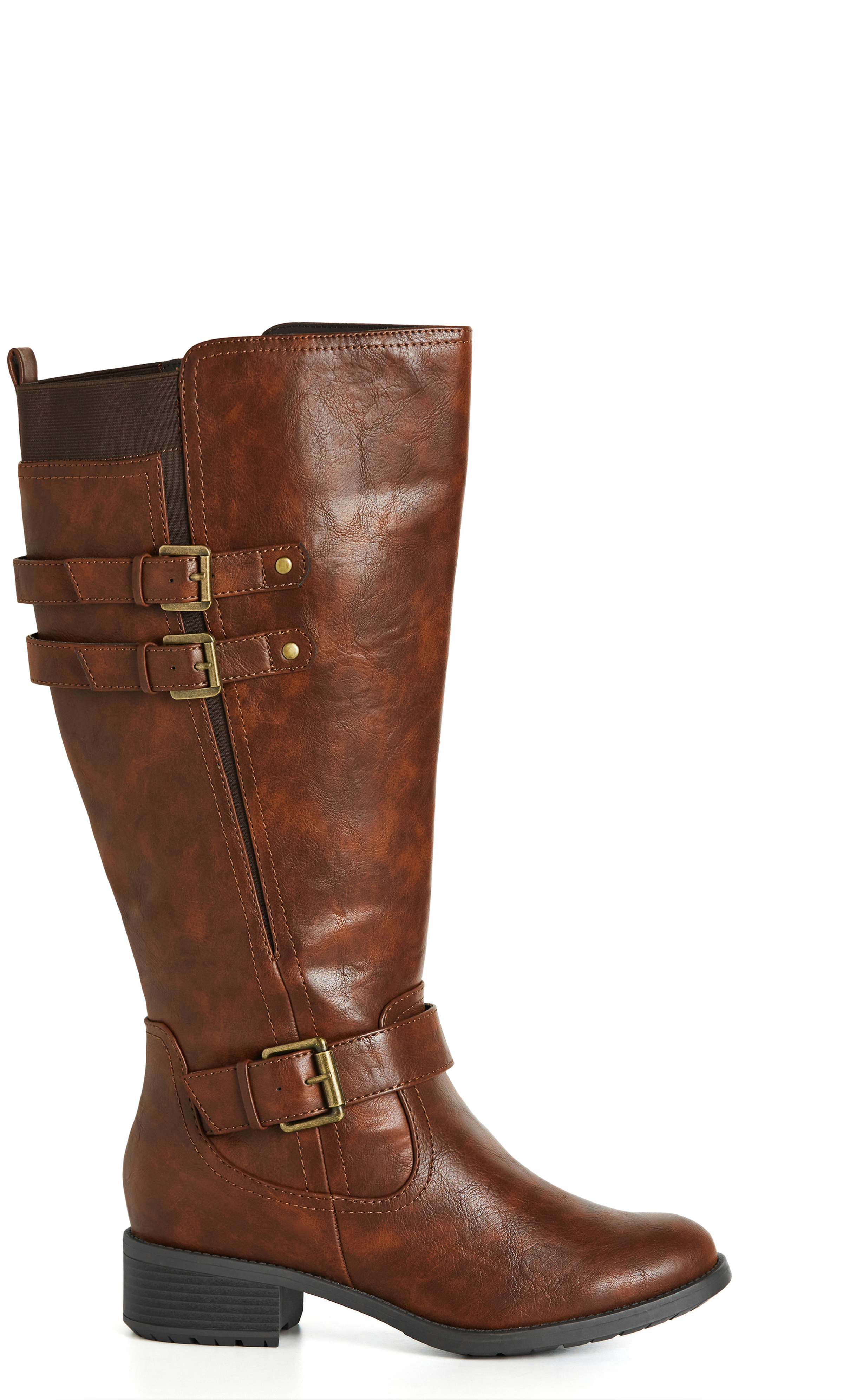 Why We Love It: Your style has you covered from head to toe, and with our Mavis Tall Boot, your look is complete. This brown tall boot is a trendy addition to your footwear that’s packed with personality. It features the classic tall boot silhouette in a sleek faux leather fabrication that adds a chic touch to your every look. The ankle strap and buckle detail work to bring a slight edge to this style, while the low block heel elevates this pair. Thanks to the wide fit, this tall boot is also just as comfortable as it is stylish.